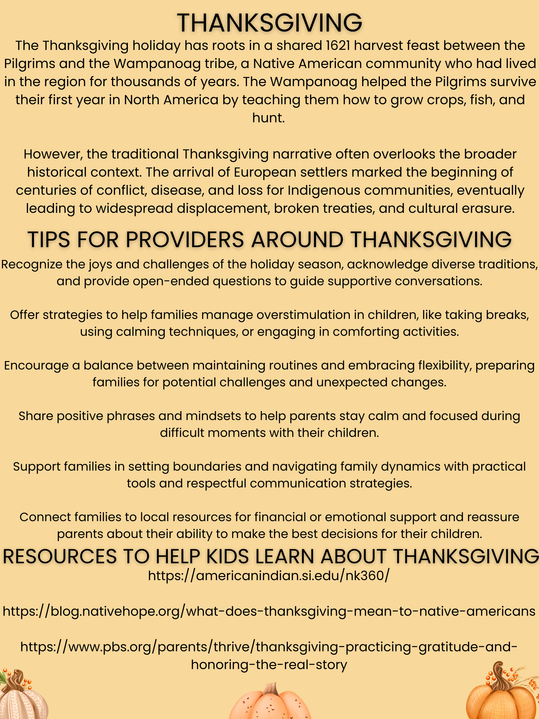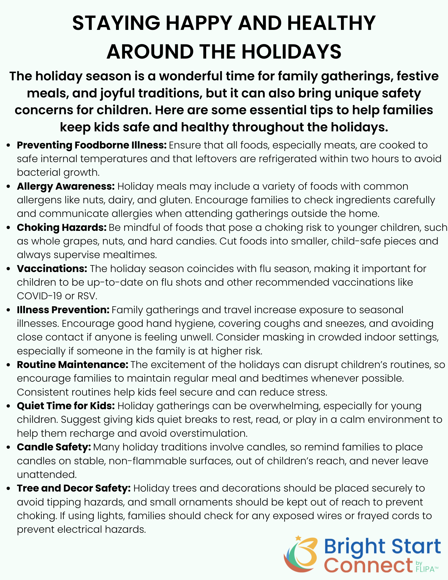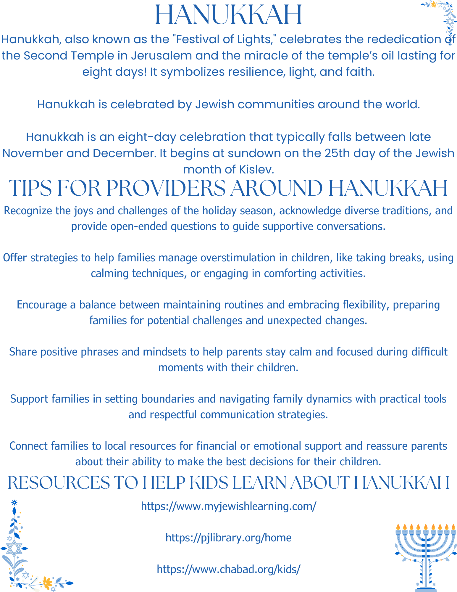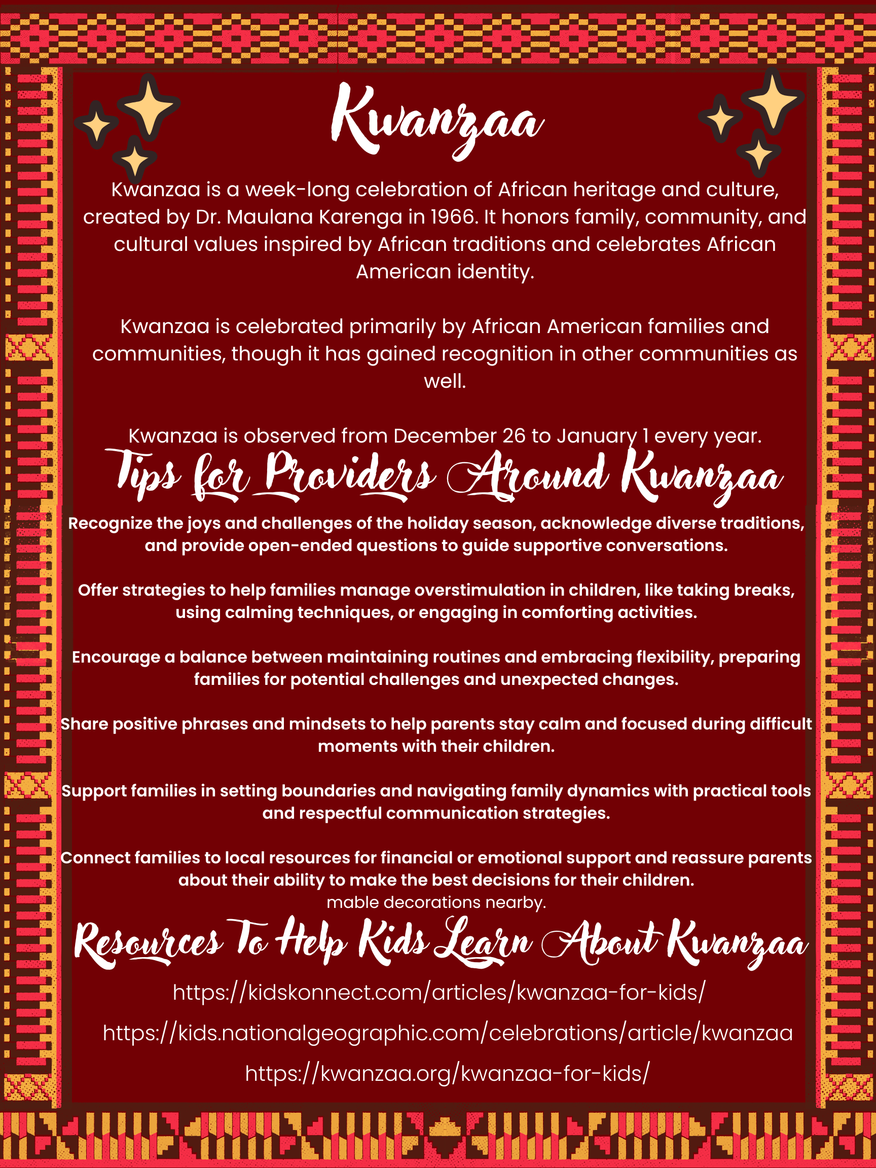 The holiday season is a time of joy, connection, and celebration—but it can also bring unique challenges. Whether you're a provider supporting families or a parent or caregiver navigating the holiday hustle, we’ve got you covered.